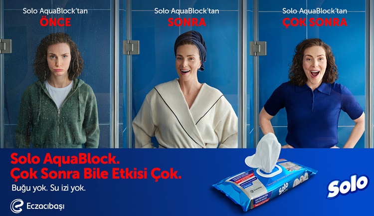 Solo, yüzey temizlik havlusu kategorisinde ihtiyaçları öngörerek ve beklentileri analiz ederek pazarı dönüştüren inovasyonlara imza atmaya devam ediyor. Önce yüzeyi kusursuzca temizleyen, ardından görünmez bir koruma etkisiyle suyun yüzeyden kayıp gitmesini sağlayan yeni Solo AquaBlock Yüzey Temizlik Havlusu, buğu ve su izi oluşumunu önleyerek yalnızca temizlik değil, temizlikten sonra da koruma sağlıyor. Solo, cam yüzeylerde bir ilk olma özelliğine sahip yenilikçi ürünü için hazırladığı reklam filminde “Çok Sonra Bile Etkisi Çok” diyor.