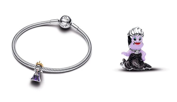 Kötü Kalpli Kraliçe charm, 925 ayar gümüş ve 14 ayar altın kaplama detaylarıyla tasarlanırken; kırmızı laboratuvar üretimi kristali ve ultra mor mine dokunuşlarıyla karakterin baskın ve ikonik duruşunu güçlü bir şekilde yansıtıyor. Disney’in en unutulmaz kötü karakterlerinden biri olan Ursula charm’ı ise 925 ayar gümüşten üretilen formu, ışıltılı ahtapot elbisesi ve parlak mine detaylarıyla “kötülüğün” büyüleyici gücünü ortaya koyuyor.