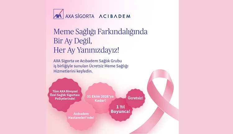 AXA Sigorta, meme sağlığı farkındalığını yaymak amacıyla Acıbadem Sağlık Grubu ile bir ilke imza attı. Ekim 2026 sonuna kadar devam edecek proje kapsamında, AXA Bireysel Özel Sağlık Sigortası sahibi 40 yaş altı kadın sigortalılar, Acıbadem Hastanelerinde kontrol amaçlı meme ultrasonundan yararlanabilecek. Ayrıca meme kanseri tanısı alanlar, tanı ve tedavi süreçlerine yönelik önemli desteklerden sağlık poliçesi kapsamında hizmet alabilecekler.
